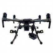 Lume Cube Beleuchtungs-Set für DJI Matrice Drohnen. So geht LumeCube in die Luft - wörtlich. Das Kit besteht aus je zwei dunkelgrauen Lume Cubes und Befestigungselementen. Damit lassen sich die beiden Lume Cubes einfach an den Armen von DJI Matrice Drohnen befestigen, gut gesichert durch Verschraubungen. Und schon lassen sich die Motive perfekt aus der Luft beleuchten. Gummibeschichtungen auf den Innenseiten beider Halter schützen die Drohnenarme vor Beschädigungen. Kleines, aber helles und steuerbares LED-Licht. Ein silikonbeschichteter, quadratischer Block von eben einmal 38 x 38 mm Kantenlänge: Das ist Lume Cube, die externe LED-Lichtquelle. Hier im Doppelpack mit zwei Halterungen speziell für DJI Matrice Drohnen. Ultrakompakt und superleicht konstruiert, liefert jeder Lume Cube bei voller Leistung von 1.500 Lumen (die ja nicht immer abgerufen werden muß) ca. 20 Minuten lang Licht. Regelbar ist diese Leistung auf bis zu null Lumen hinab, gut für motivgerechte Lichtsteuerung. Mit beiden Lichtwürfeln zusammen kann eine Drohne dunkle Szenerien mit bis zu 3.000 Lumen ausleuchten. Die Farbtemperatur von 6000° Kelvin ist tageslichtähnlich hellweiß, optimal für die Wiedergabe der natürlichen Motivfarben. Die Ladezeit (USB-Kabel gehört zum Set) beträgt nur ca. 1,5 Stunden.